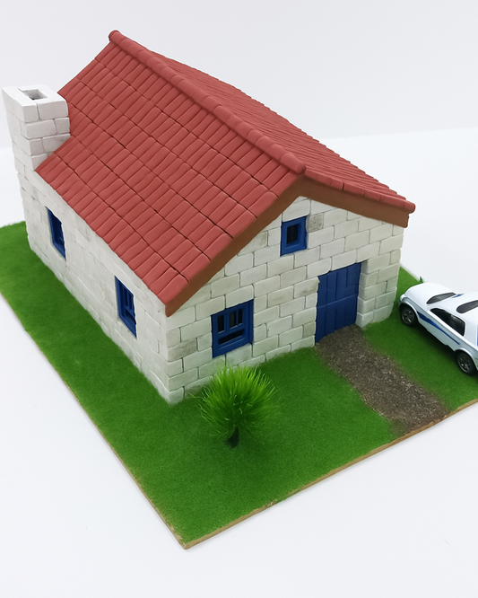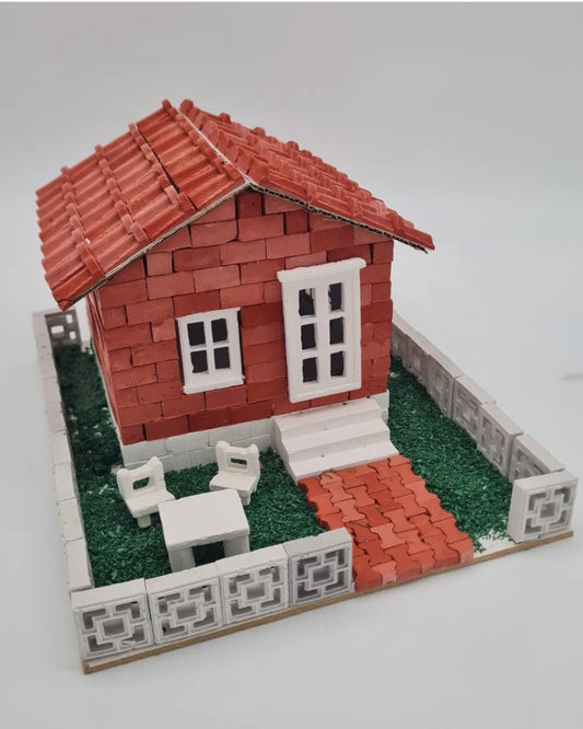 Minyatür mala, harç tepsisi ve resimli talimat dahil olarak gönderilir, böylece gerçekçi bir yapım deneyimi yaşarsınız.
